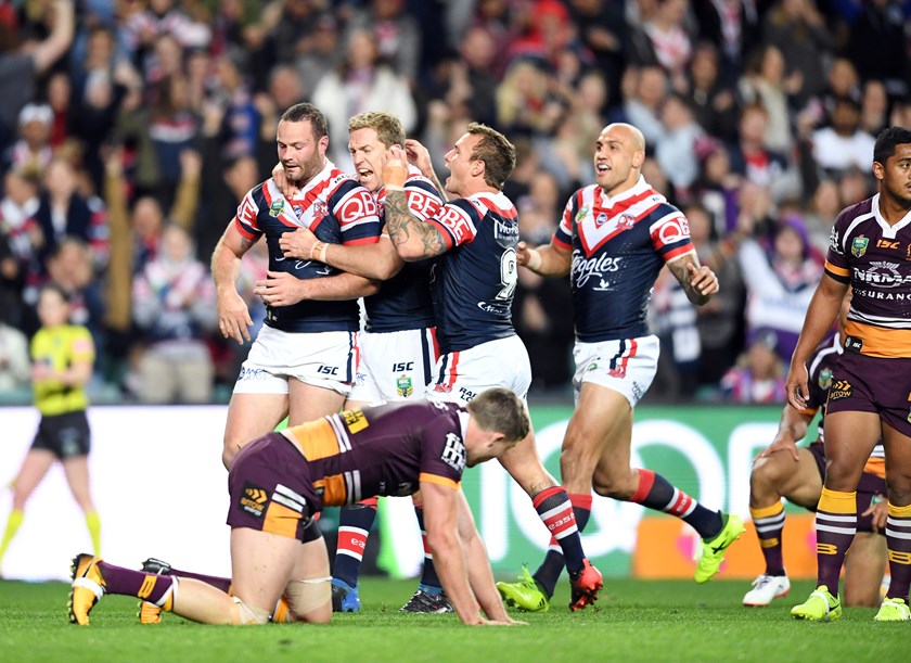 The roaring cheers from Roosters fans took a brief hiatus when the Broncos opened the flood gates to score three unanswered tries through Corey Oates and Ben Hunt and take a late lead.