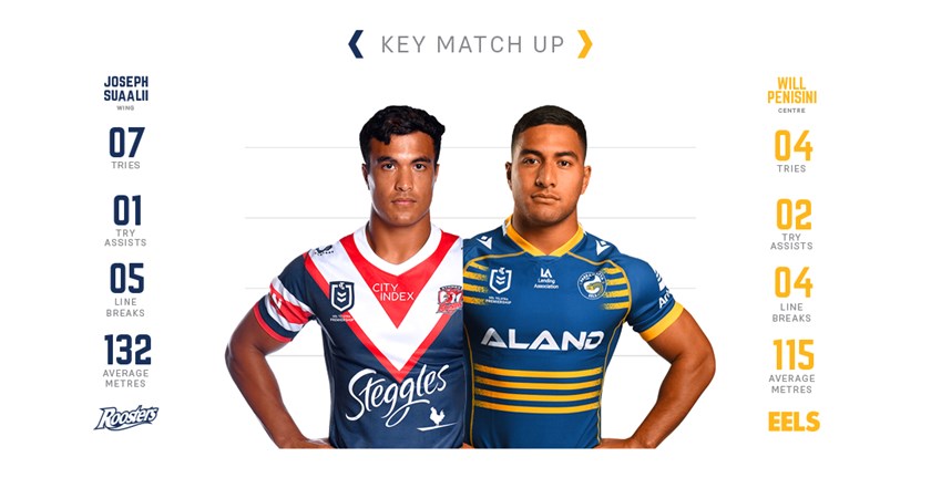 His opponent in Will Penisini has been a mainstay in the centres for Parramatta this season, playing all thirteen of the Eels' matches and producing four tries, two try assists, and four linebreaks with an average of 115 running metres.