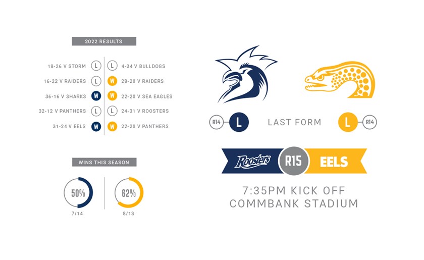 The Roosters and Eels face off in encounter no.137, with Easts holding the advantage with 68 wins, including seven of the last ten dating back to 2014.