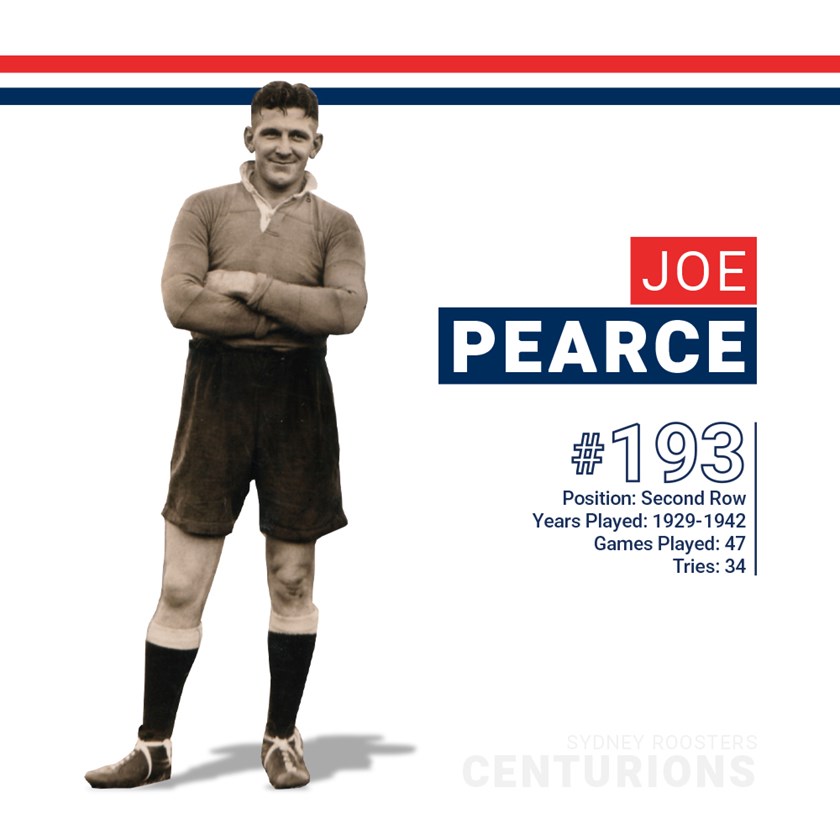 Joe Pearce was a member of the Roosters’ dominant forward pack in their golden era during the mid-1930s.