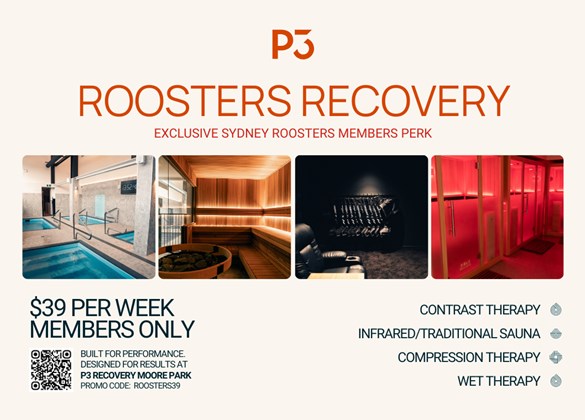 Offer: $39/week membershiip at P3 Recovery Moore Park, including contrast therapy, infrared/traditional sauna, compression therapy and wet therapy. Use code: ROOSTER 39 T&Cs Apply