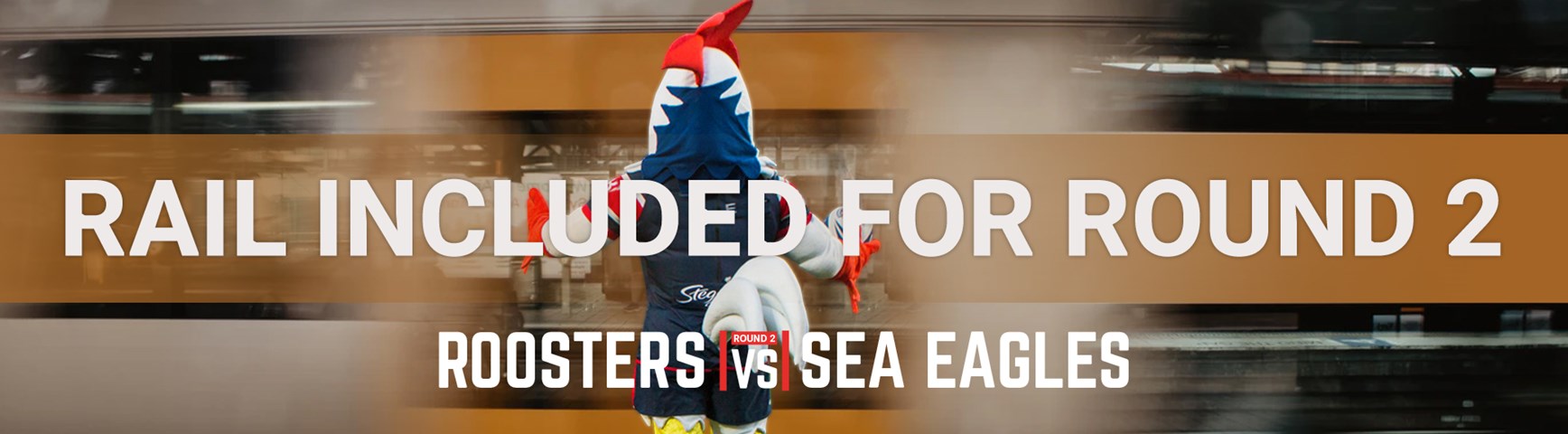 The Sydney Roosters are pleased to announce that 2020 Membership cards and valid pre-purchased tickets will include rail travel for our Round 2 home game against the Manly Sea Eagles at Central Coast Stadium.