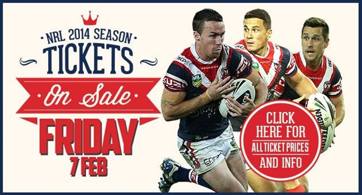 With just over a month remaining before kick off in the 2014 NRL Season, the Club can confirm that Tickets for all Roosters home games will be available to purchase from Friday 7 February at 10am.