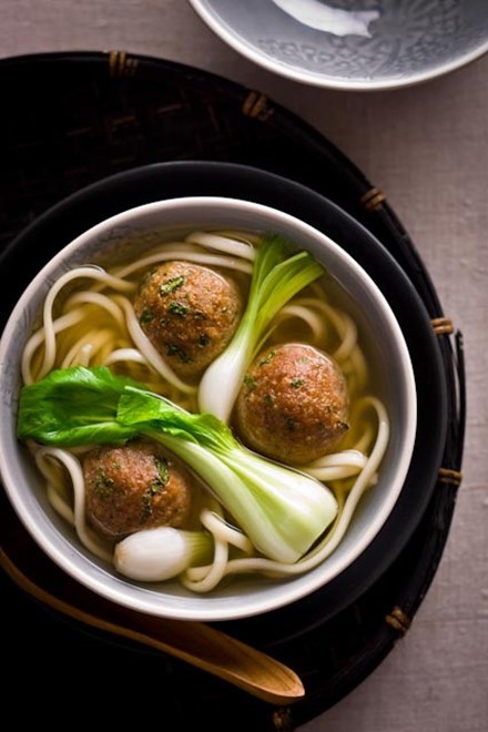 2. Simmer the stock in a large pan; add bok choy, shallots and noodles. Place turkey balls into serving bowls and spoon over soup. Garnish with coriander.
