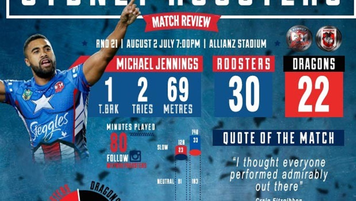 Get all the stats that matter from last Saturday's eight point, 30-22 win over the St George Illawarra Iron Man Dragons, including the Quote and Tweet of the week!
