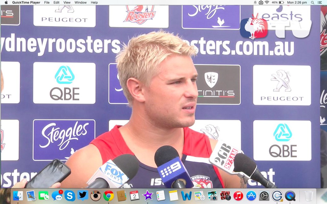 Matt McIlwrick faces the cameras outside Roosters HQ at the Club's first media opportunity of the 2015 NRL Season in his first appearance in the Tricolours ahead of our season opener against the North Queensland Cowboys in Townsville on Saturday night.