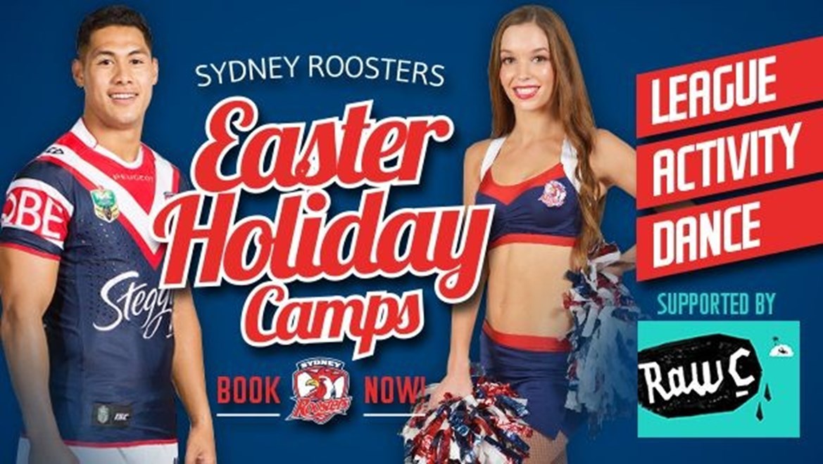 Details for this year's Sydney Roosters Easter Holiday Camps, supported by Raw C.