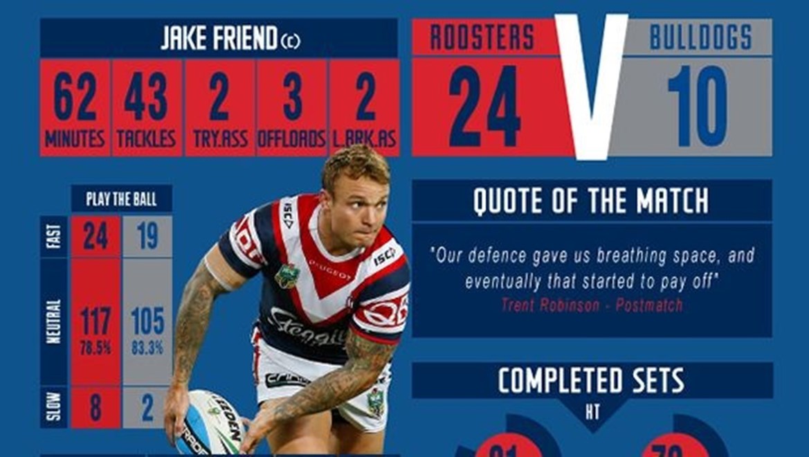 Review the Round 10 Match Infographic following the ANZ Stadium showdown against the Bulldogs. Read all about what the boys did to get the job done and we highlight the key stats from the huge game Jake Friend had.