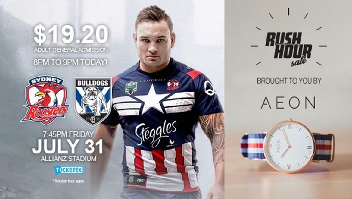 In honour of the boys this Friday representing in the Captain America jersey, we have a Super Hero Ticket offer in tonight’s Roosters Rush Hour!
