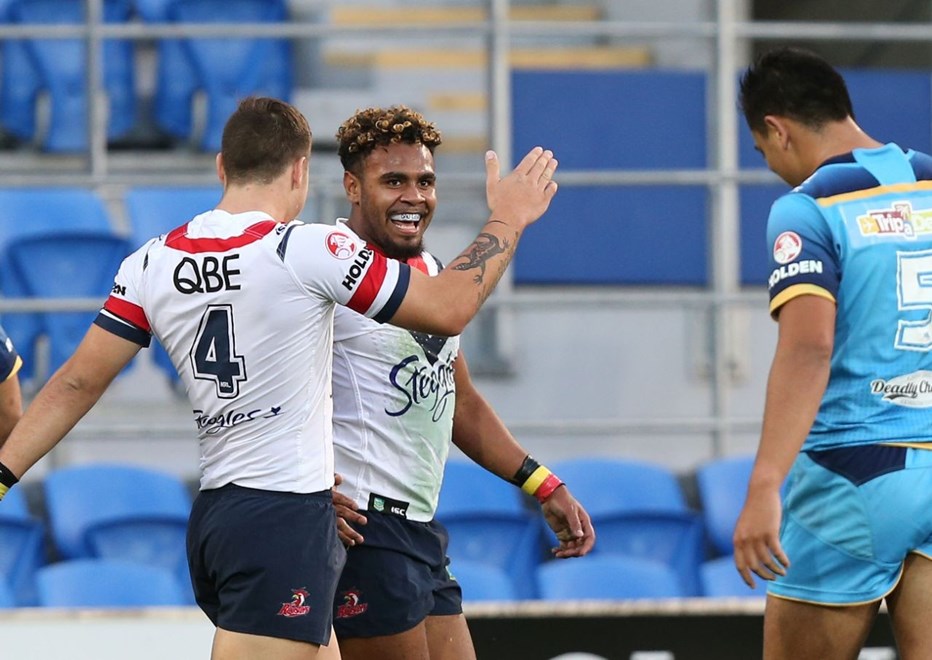 It wasn’t an ideal start for the Roosters on defence, letting in a try in the opening minutes through Titans lock Morgan Boyle.