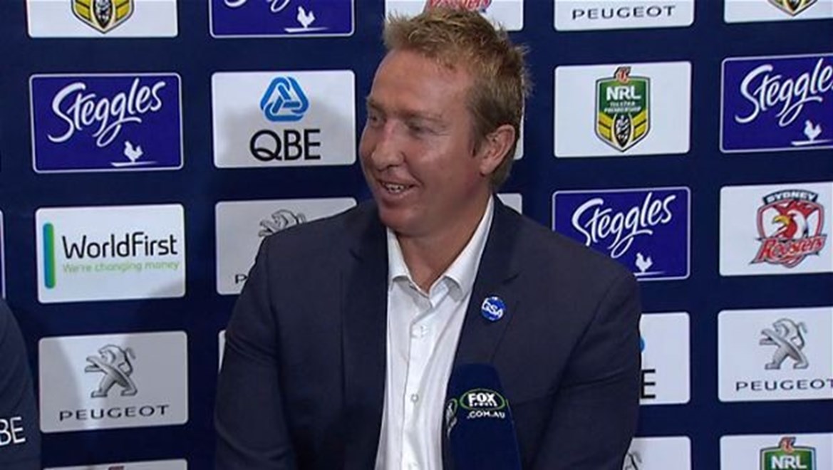 Head Coach Trent Robinson faces media following a close contest against the Sharks in Round 19