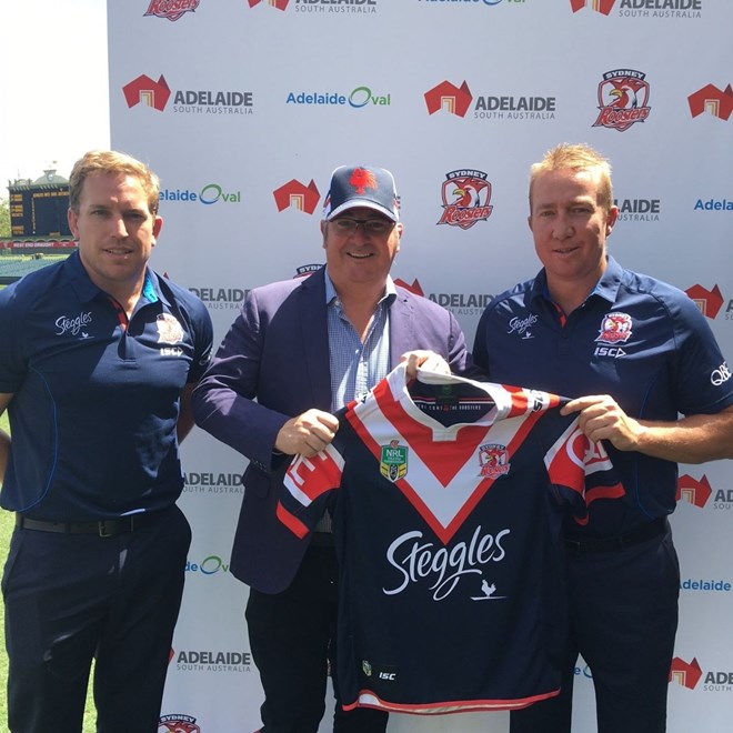 South Australian Tourism and Sport Minister Leon Bignell today joined Roosters CEO John Lee, Head Coach Trent Robinson and senior player Mitchell Aubusson, as well as NRL Head of Football Brian Canavan, to make the announcement at Adelaide Oval.