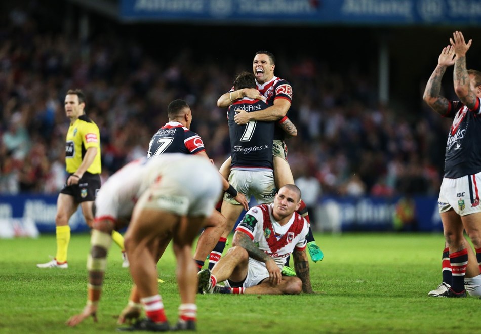 The Roosters looked headed for victory when Michael Gordon nailed a penalty goal from directly in front to give his side a six-point cushion with five minutes remaining, only for the Dragons to hit back in dramatic style to send the game into golden point.