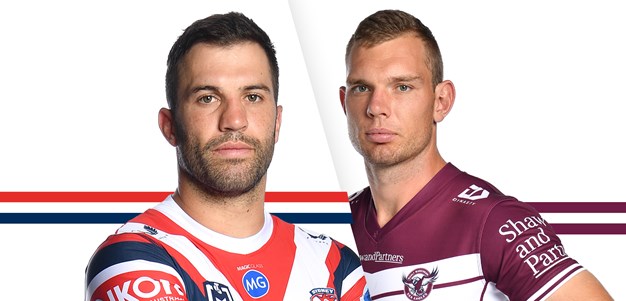 Manly camped themselves in the Roosters' 20-metre zone late in the first half. Through tiring defence Tom Trbojevic waltzed to the line off the pass of dummy half Api Koroisau to put Manly 10 points ahead (22-12).