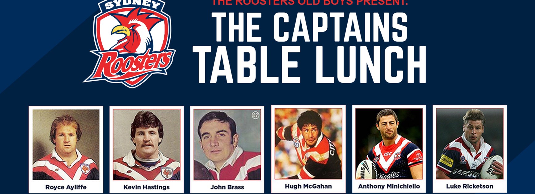Have lunch with the Roosters great Captains in a full day of entertainment, laughs and great story telling.