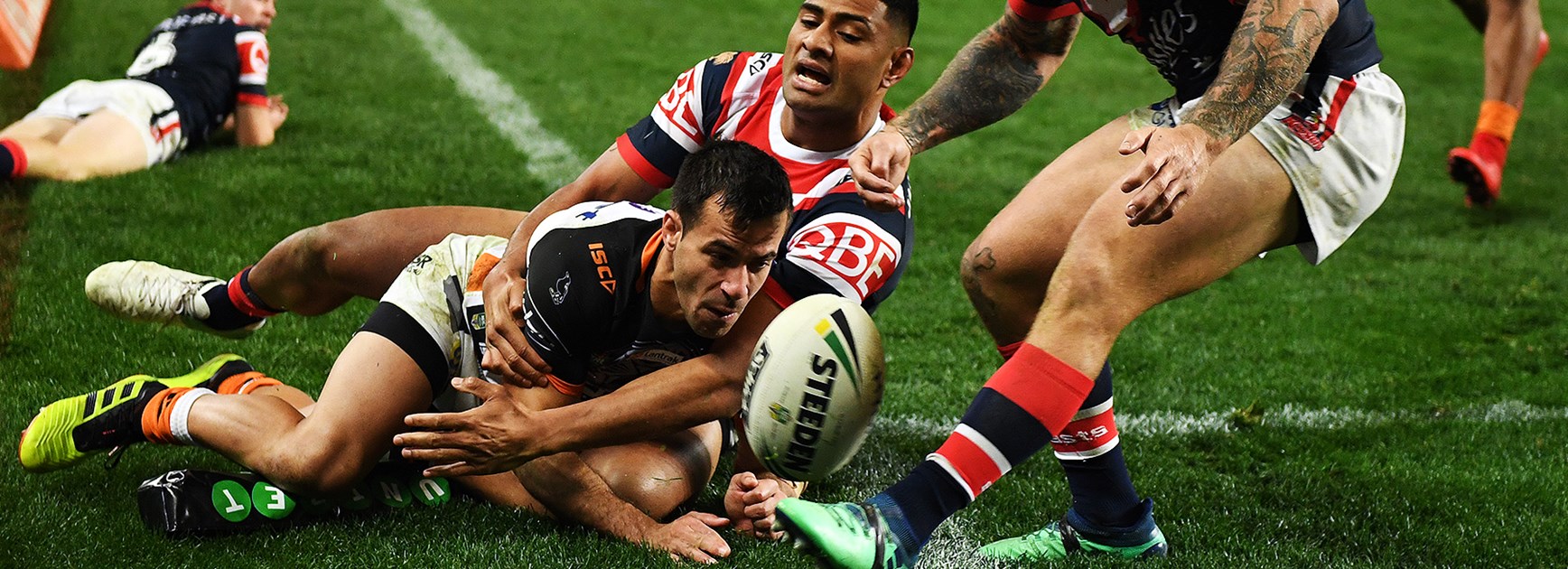 But it nearly went so horribly wrong. The Tigers clawed their way back from trailing 14-2 midway through the second half to rattle the Roosters 16-14 with just six minutes left, when Josh Reynolds scored a sneaky 74th minute try from dummy-half.