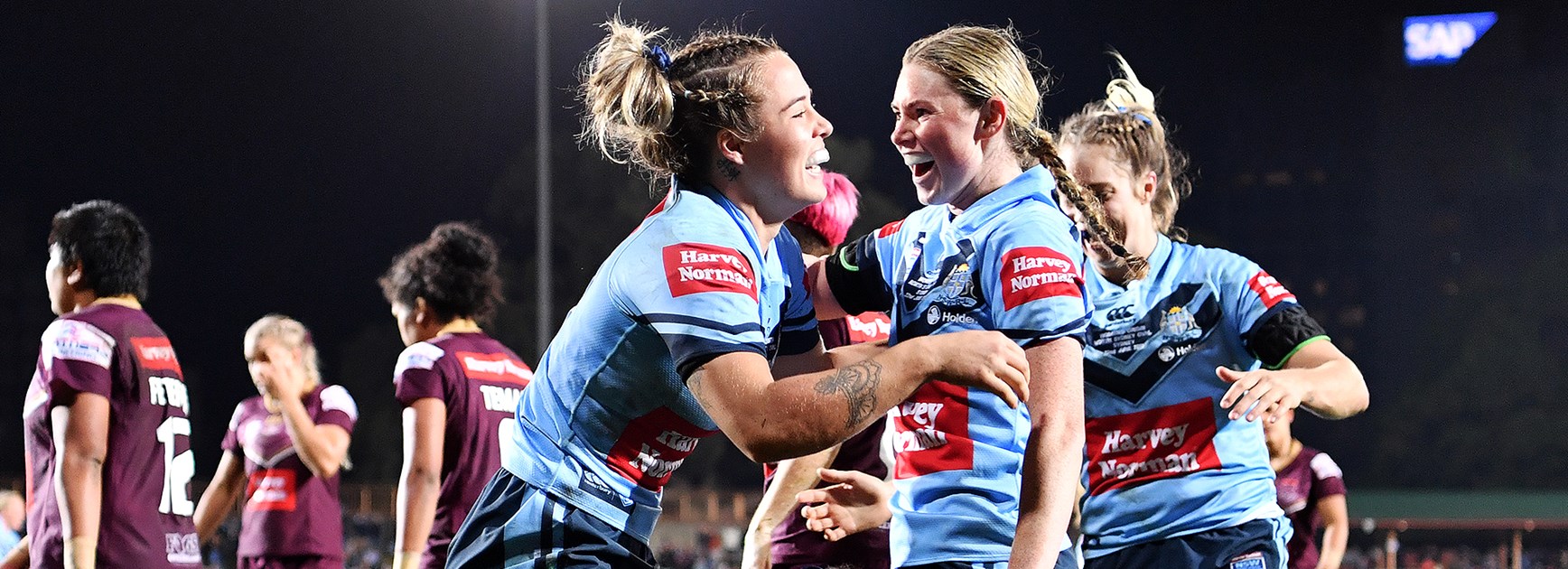 NSW have scored a late try to pull off a 16-10 victory and claim the inaugural women's Holden State of Origin in front of 6824 fans on Friday night at North Sydney Oval.