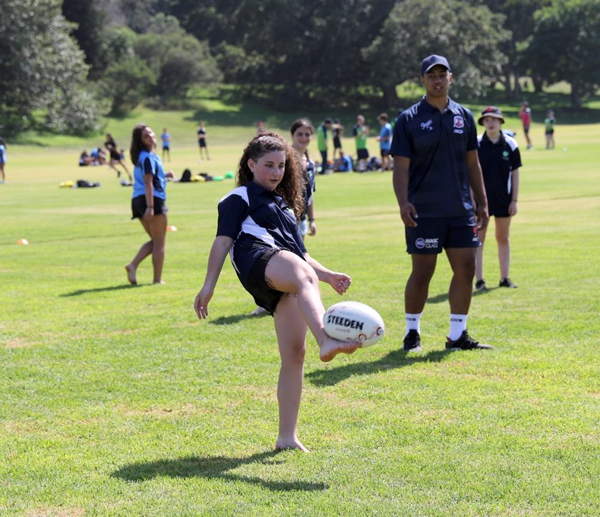 Roosters under 20's players, Women's Captain Simaima Taufa, and Community Staff met with the kids to run some fun rugby league clinics, kick the footy around,and teach new tips and tricks.