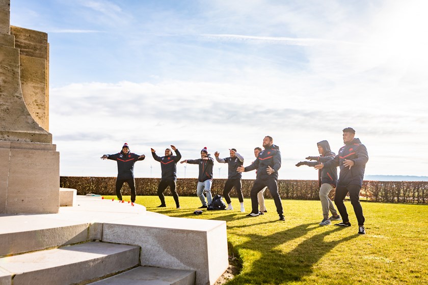 The Kiwi members of the squad placed poppies at the monument and then broke into stirring haka.