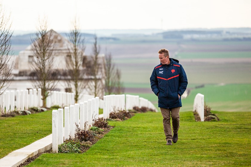 As the boys boarded the team bus they met Mike, a decorated war veteran and now war historian who would guide the Roosters through the hallowed Somme region, the site of horrific World War I battles and where nearly 7000 Australians lost their life.