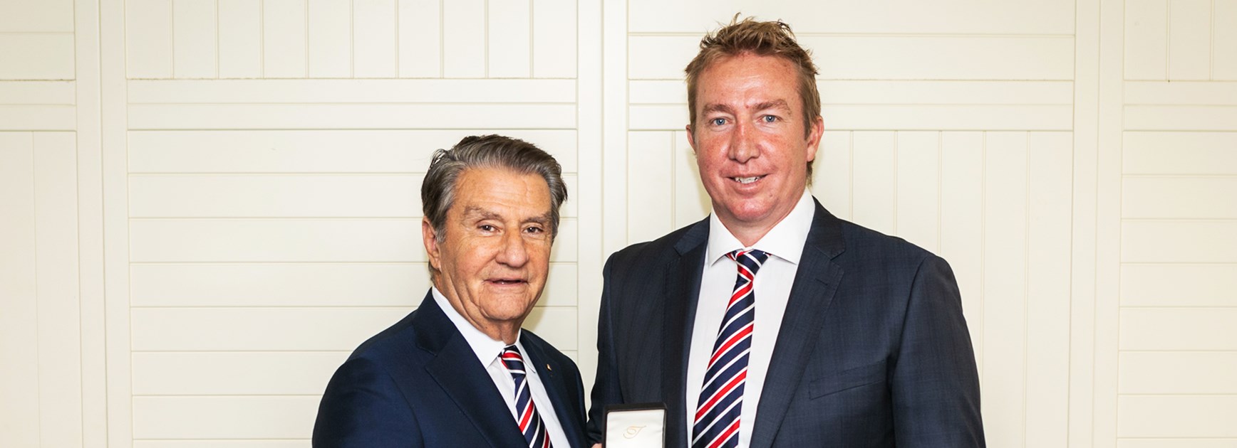 Robinson spoke of the honour of receiving Life Membership after he was handed his Membership pin by Chairman Nick Politis AM in front of the Club's Life Members.