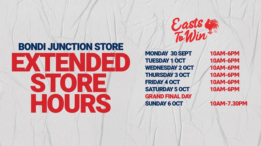 Trading hours at the Bondi Junction team store have extended this week in the lead up to the big match, so be sure to head down and dress up!