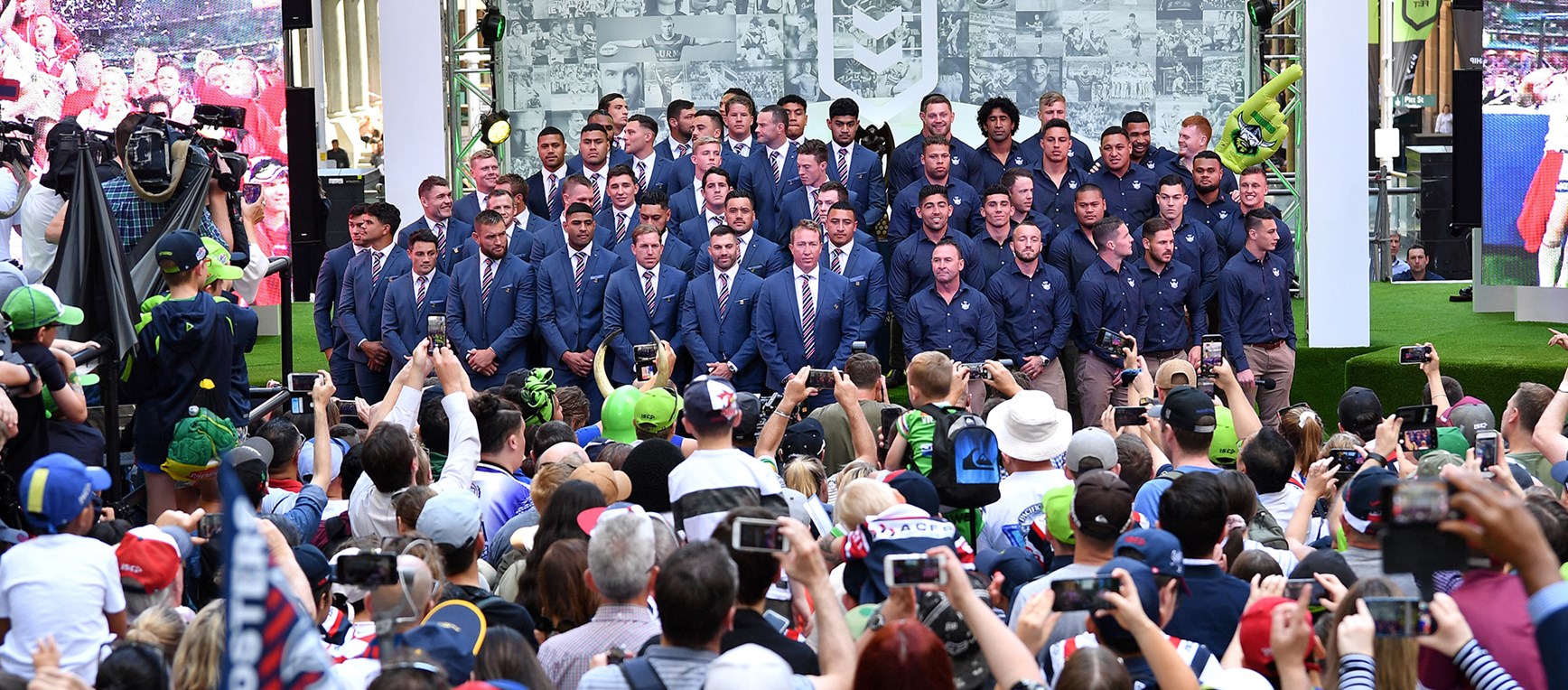 The Sydney Roosters Grand Final Squad made an appearance at the NRL's Fan Fest in Martin Place to meet with fans and answer questions ahead of the Grand Final!