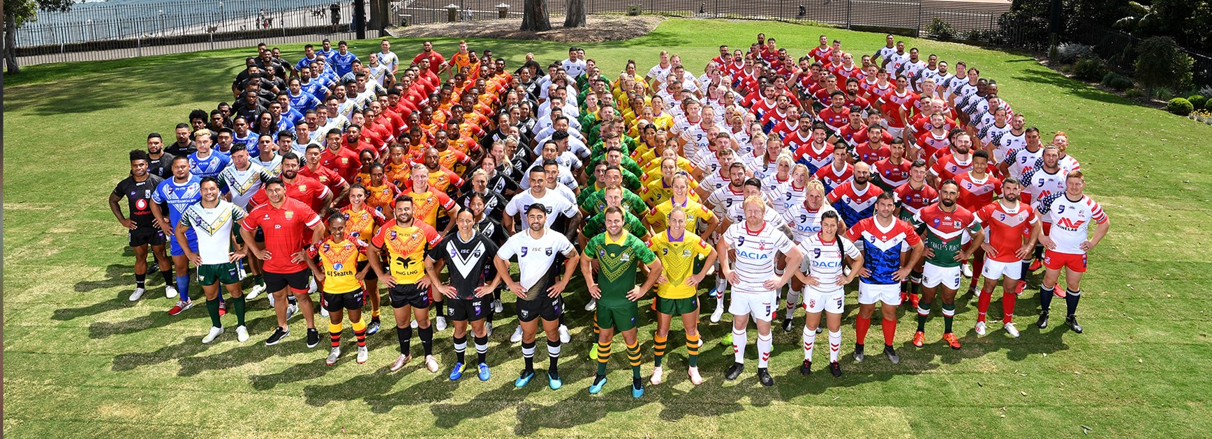 Traditional league nations Australia, New Zealand and England are joined by emerging Pacific nations Tonga, Fiji, Samoa and the Cook Islands in the men's tournament.
