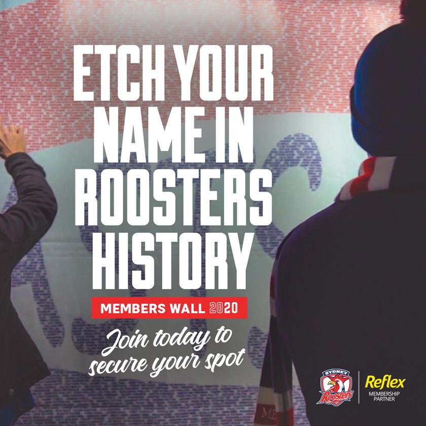 Roosters fans that have yet to become Members of the Club have until Wednesday, March 11th to lock in their commitment for 2020 and have their names present on the Members Wall.