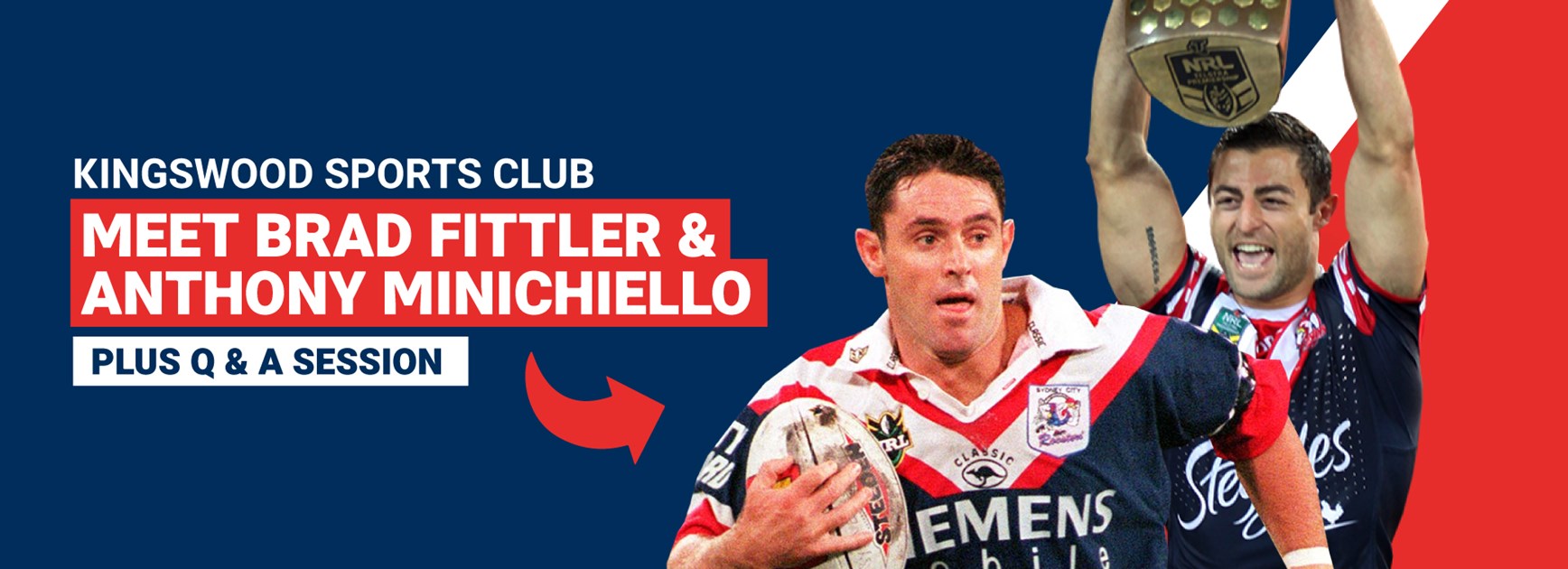 Dear Members, due to recent developments and Club protocol outlined, the appearances of Brad Fittler and Anthony Minichiello has been cancelled due to their close relationship with players and staff.