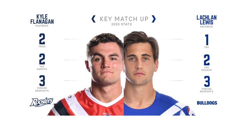 Halfback for Bulldogs is number 7 Lachlan LewisHalfback for Roosters is number 7 Kyle Flanagan