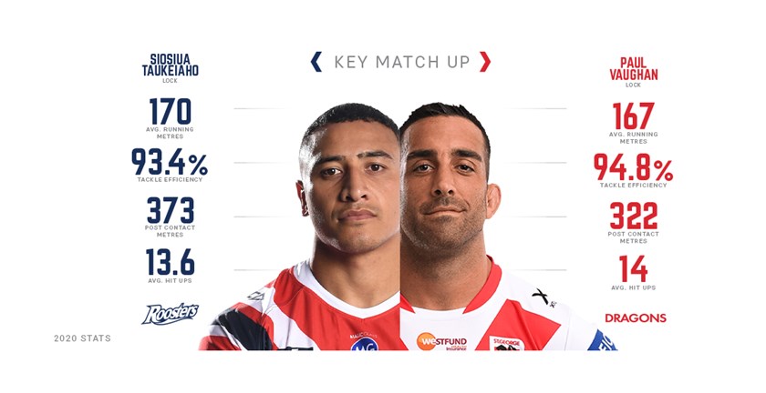 Prop for Roosters is number 10 Siosiua TaukeiahoProp for Dragons is number 10 Paul Vaughan