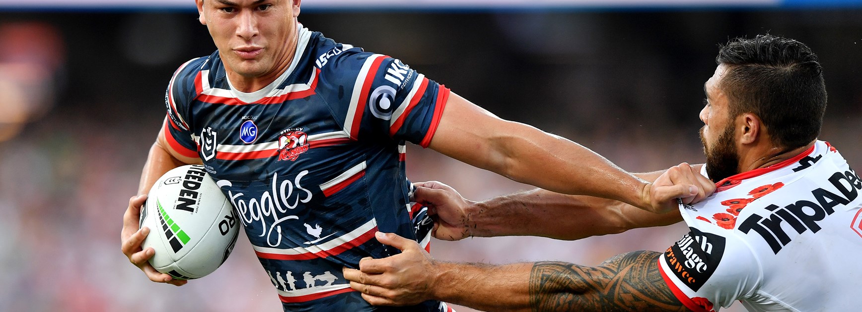 Interchange for Dragons is number 16 Trent MerrinInterchange for Roosters is number 15 Poasa Faamausili