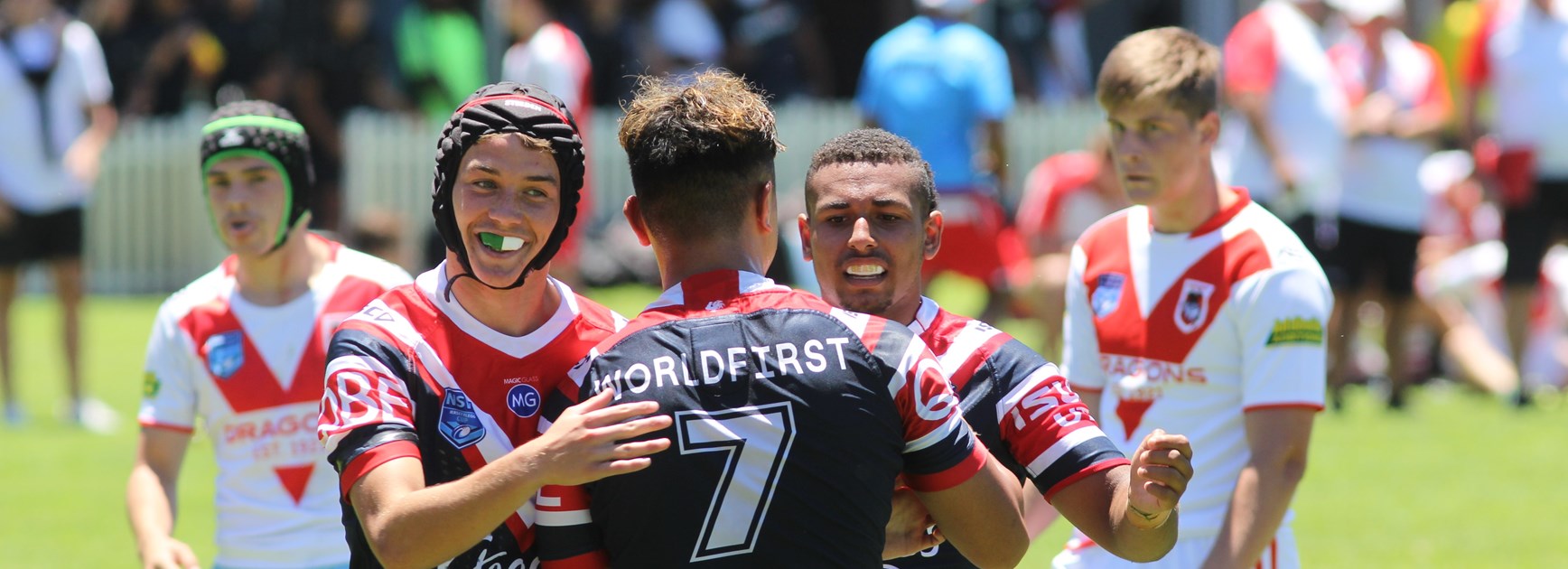 Sydney Roosters juniors have pulled on the jersey for the first time in 10 months, playing in trial games against St George Dragons at Mascot Oval.