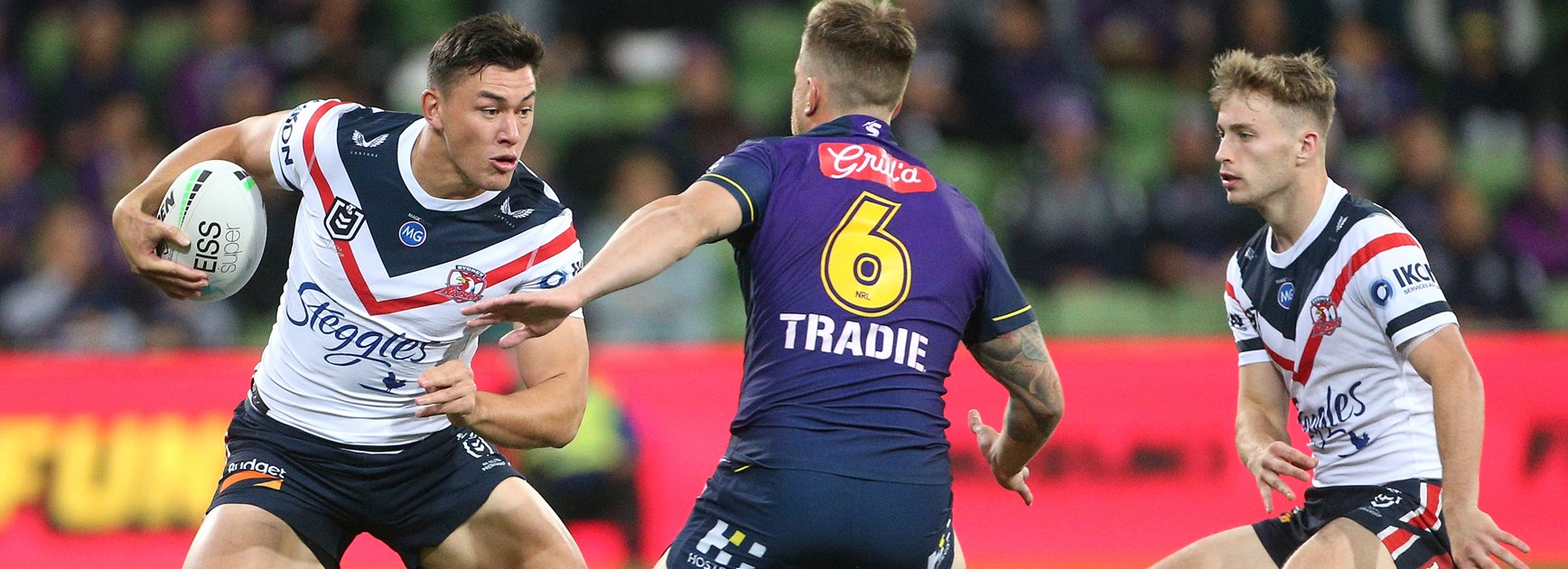 The Sydney Roosters have been downed 20-4 by the Melbourne Storm at AAMI Park in what was a gallant performance from the Red, White and Blue.