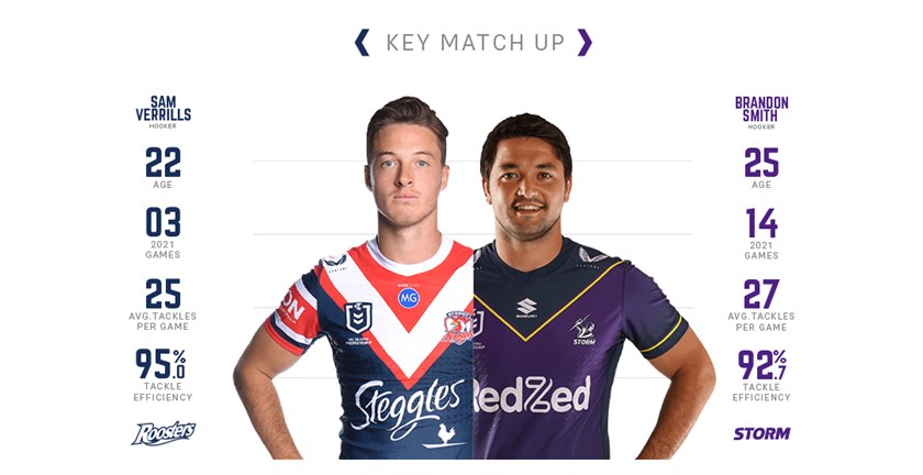 Hooker for Roosters is number 9 Sam VerrillsHooker for Storm is number 9 Brandon Smith