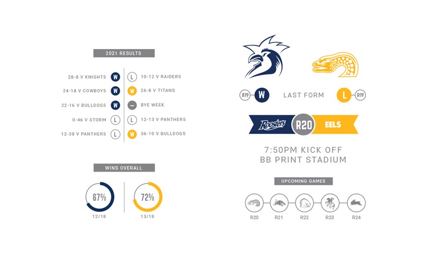 Both sides head into the match in different bouts of form; the Roosters on a three-match winning streak while the Eels have won just one game in the last month - but as we all know, form counts for nothing once the teams get on the field.