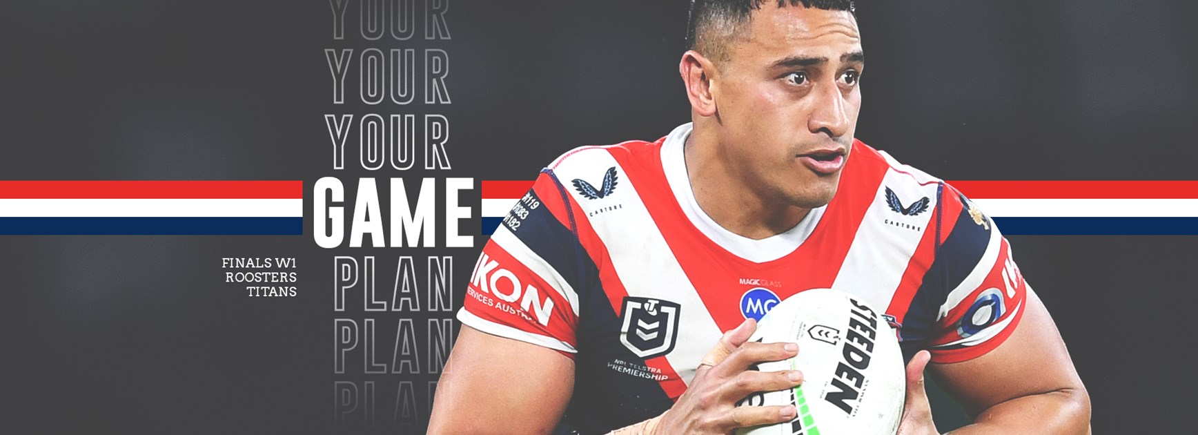 You can see our mighty Roosters take on the Titans on Channel Nine and Fox League (channel 502 on Foxtel), or streamed through Kayo.