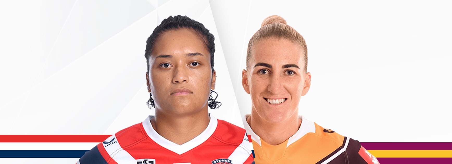 Interchange for Roosters is number 18 Raecene McGregorInterchange for Broncos is number 17 Sara Sautia