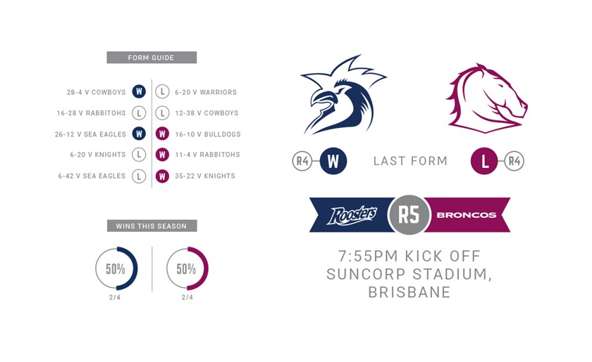 The Sydney Roosters remain in Queensland and return to Suncorp Stadium for yet another Friday night blockbuster against the Brisbane Broncos.