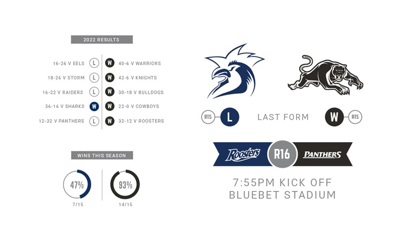 The Roosters and Panthers meet for the second time this season in the 97th contest between the two clubs - with the Red, White and Blue holding the ledger with 56 wins.