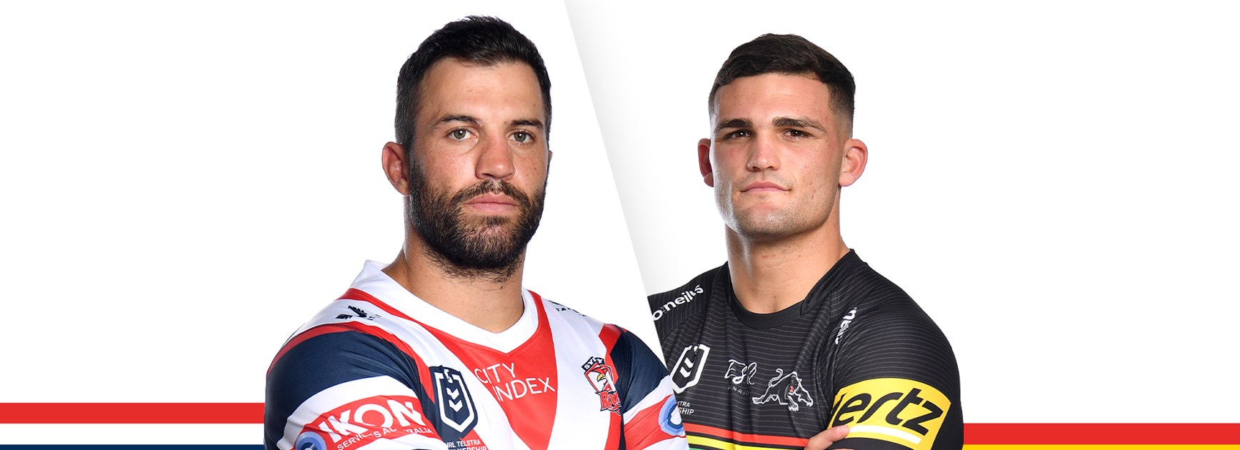 Fullback for Panthers is number 1 Dylan EdwardsFullback for Roosters is number 1 James Tedesco