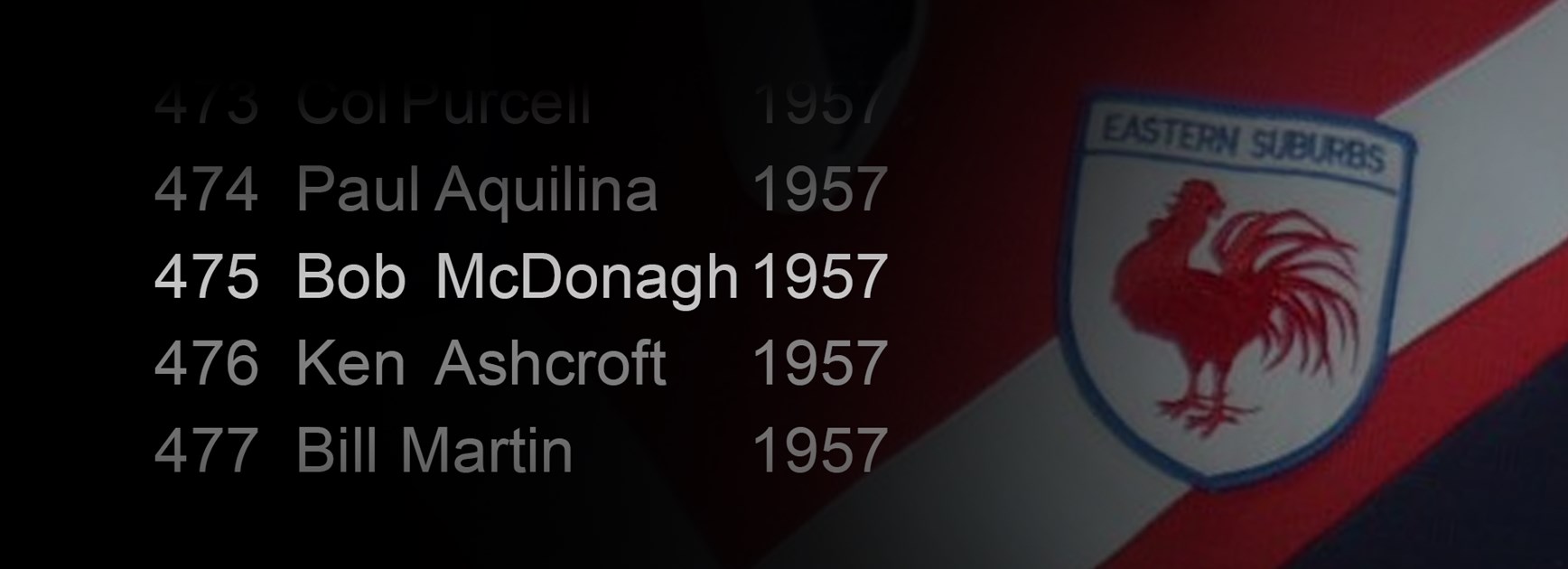 McDonagh, Rooster #475, played 55 games for the Club between 1957 and 1961 as a front rower, most notably in the Club's 1960 Grand Final side.