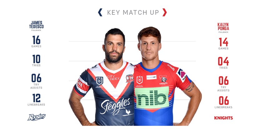 Fullback for Knights is number 1 Kalyn PongaFullback for Roosters is number 1 James Tedesco