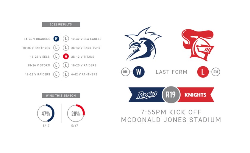 The Sydney Roosters continue their northward trajectory when they head up the M1 to face the Newcastle Knights in a Friday night showdown.
