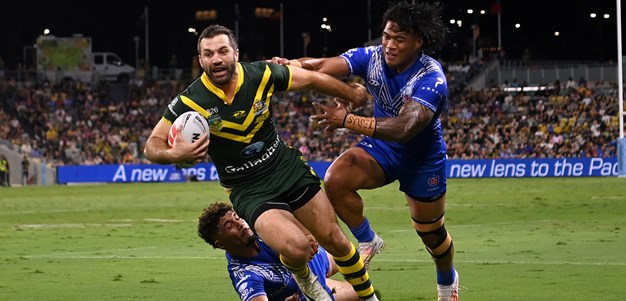After conceding the first four-pointer of the night the Kangaroos struck back in style with one of the great World Cup tries. Hooker Ben Hunt took the ball on the last tackle and launched a cross field kick from 40 metres out. Kiwis winger Jordan Rapana tracked the ball back and looked set to make the catch before Josh Addo-Carr appeared from nowhere to take the ball on the full and score his 12th try of the tournament. Addo-Carr's blinding speed and instincts have been a highlight of the World Cup and his highlight reel will make for spectacular viewing for years to come.
