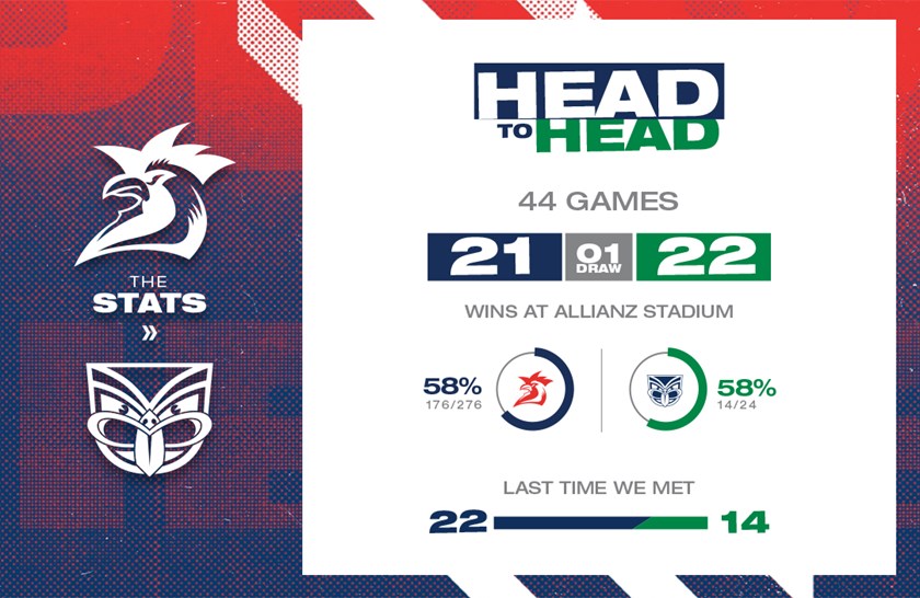 The Warriors currently have a one-win advantage over the Roosters across all matches played between one another, and Easts will look to level the scores this Saturday.