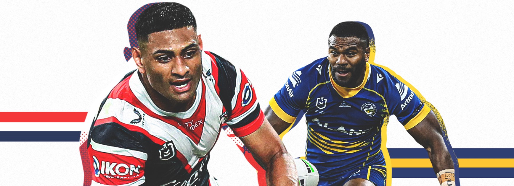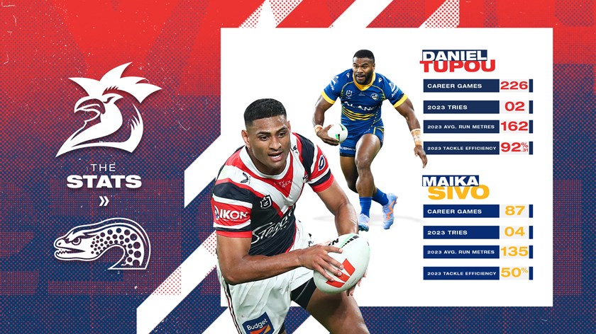 Winger for Roosters is number 2 Daniel TupouWinger for Eels is number 2 Maika Sivo