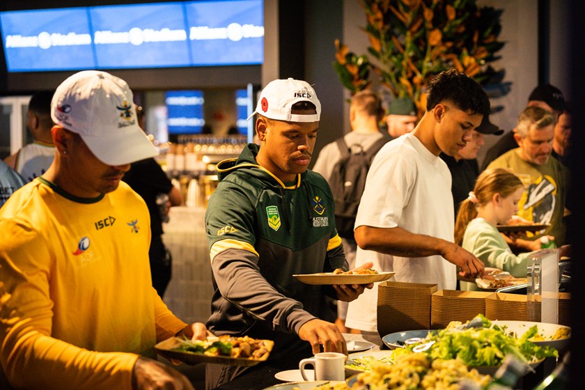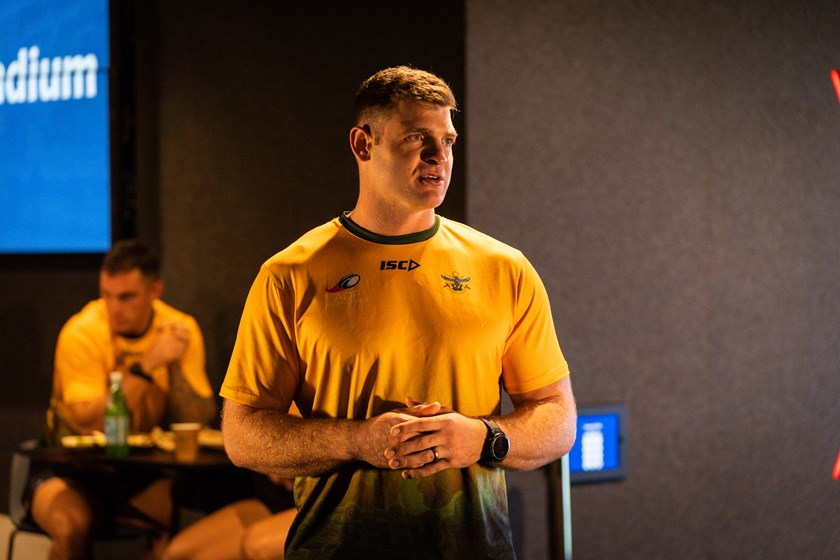 One day before their clash for the Anzac Cup, the Sydney Roosters squad met with the Australian Defence Force Rugby League (ADFRL) team to hear about what Anzac Day means to those who have served.