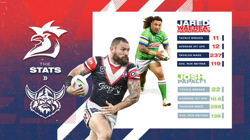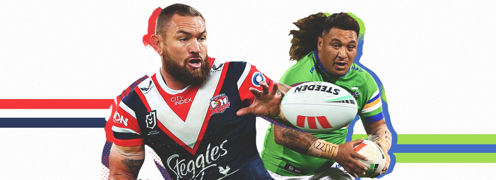 Prop for Roosters is number 8 Jared Waerea-HargreavesProp for Raiders is number 8 Josh Papalii